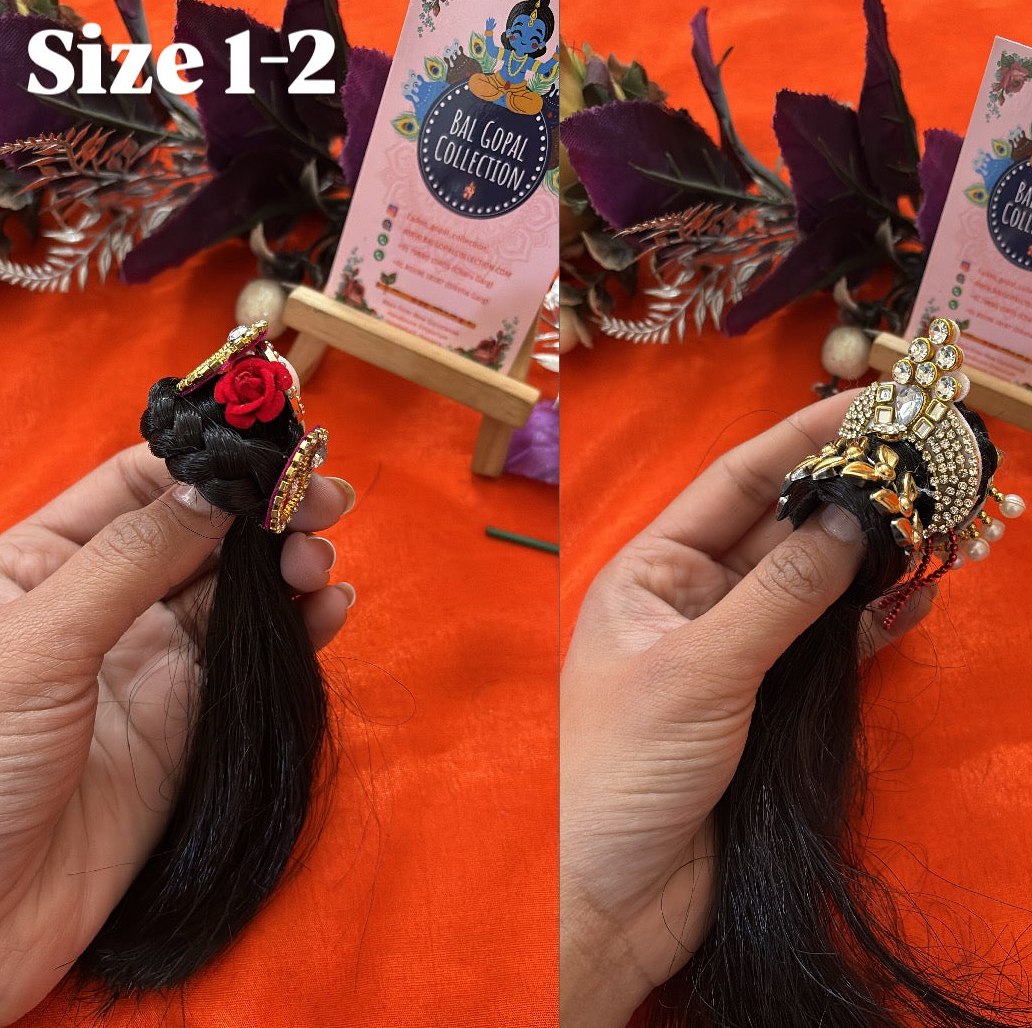 Heavy designer hair for Radha Rani Open Kesh size 1-2 | Deity Hair Accessory